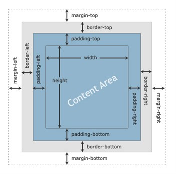 All boxes contain a content area at the center, which may be surrounded by optional padding, border and margin areas.
