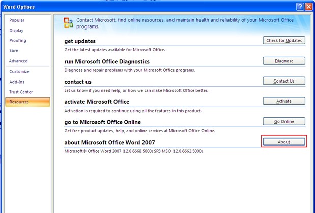 > [Program_Name] Options > Click Resources, and then click About.