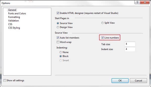 1. Tools > Options > General node > Source View