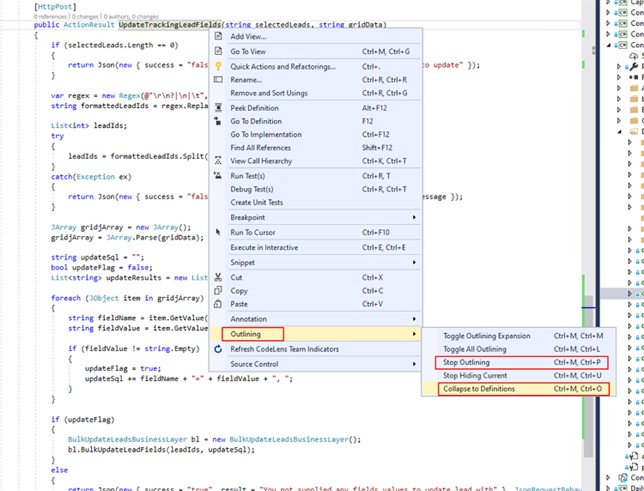 Although you would use this in a view or aspx page, this functionality applies to visual studio code editor too. But #region directive is probably better applied here.