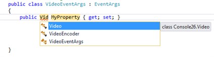 propfull Creates a property declaration with get and set accessors. Inside a class or a struct.